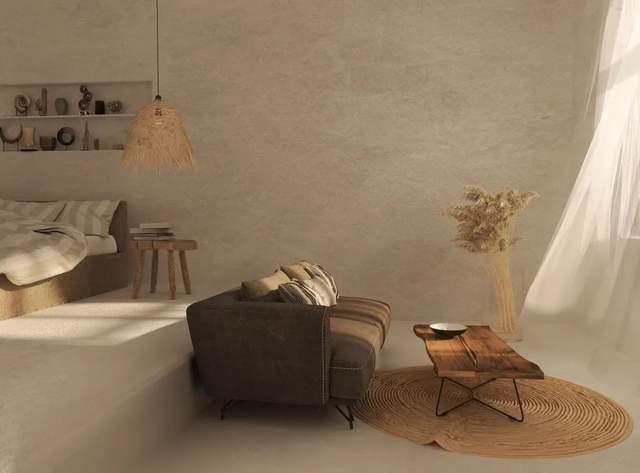2、材料:客厅大面积留白,木质、竹制、纸质的天然绿色建材被广泛应用。