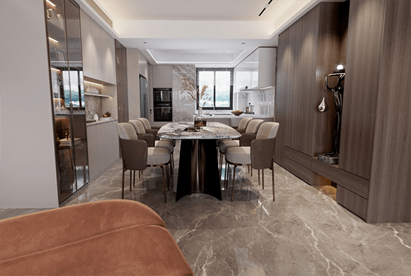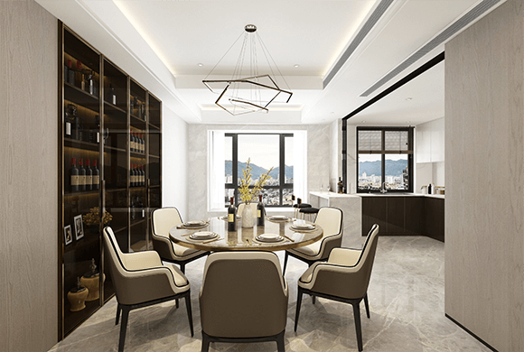 设计师融合以当代的建筑风尚、以及东方美学的精神内核,在城市前沿的繁华静处,诠释一处契合城市内心之所向的现代中式人居空间,给予懂生活的人一处归心之所,寻得生活之本真含义。